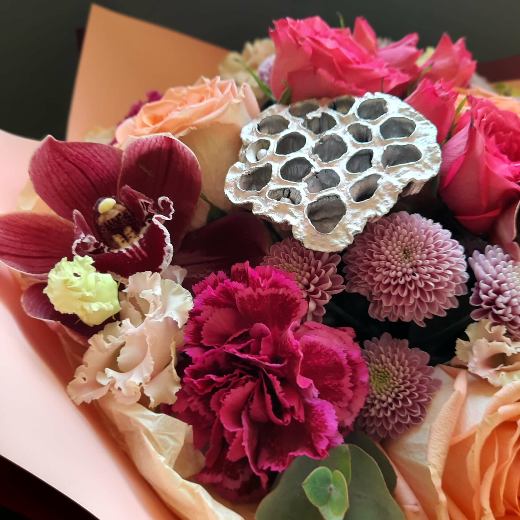 Собираем букеты так, чтобы понравилось Вам и нам, сочетая свежесть и красоту цветка с техниками сборки букетов, современными трендами и любовью создателей.