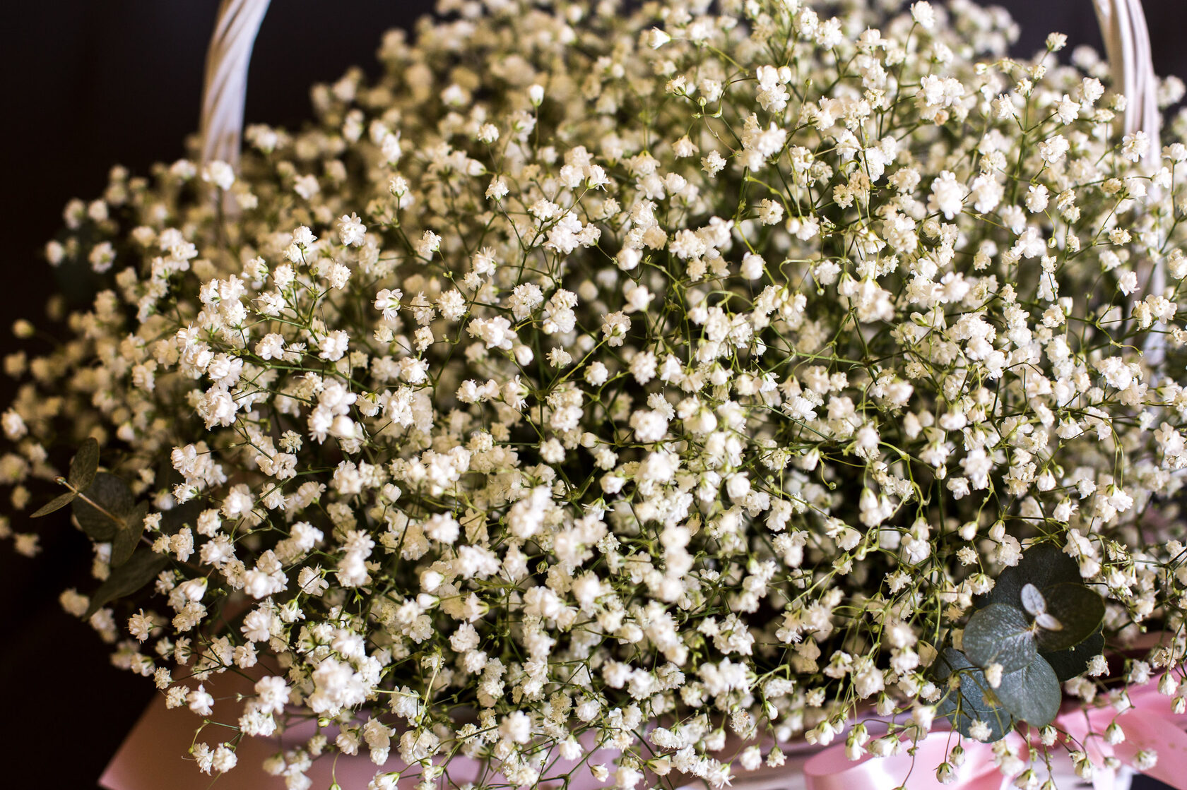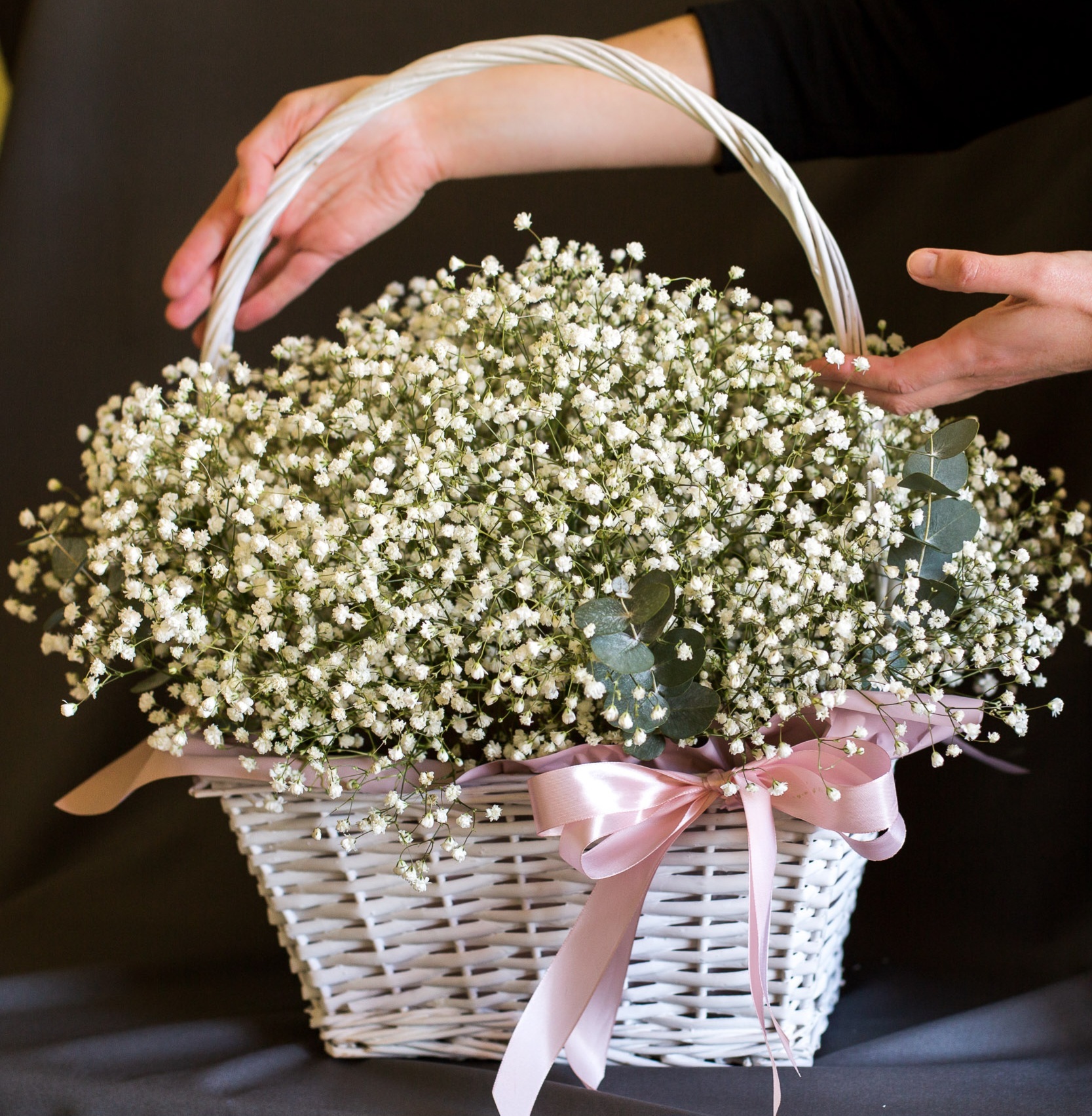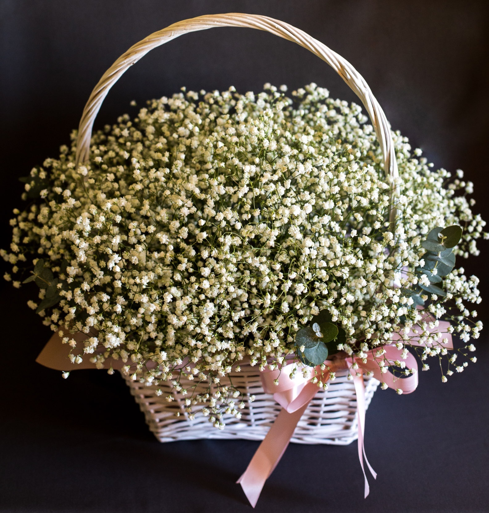 Состав : белая гипсофила. Ширина 55см, высота 50см
